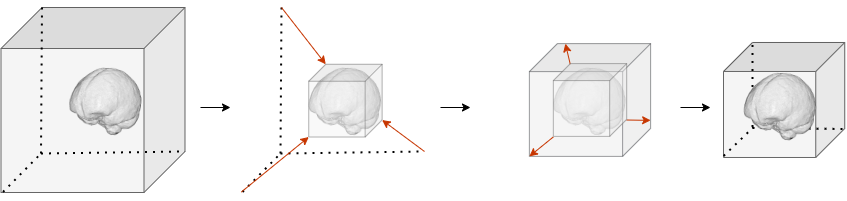 - Crop to bounding box: Identifies and removes empty voxels around the non-zero region